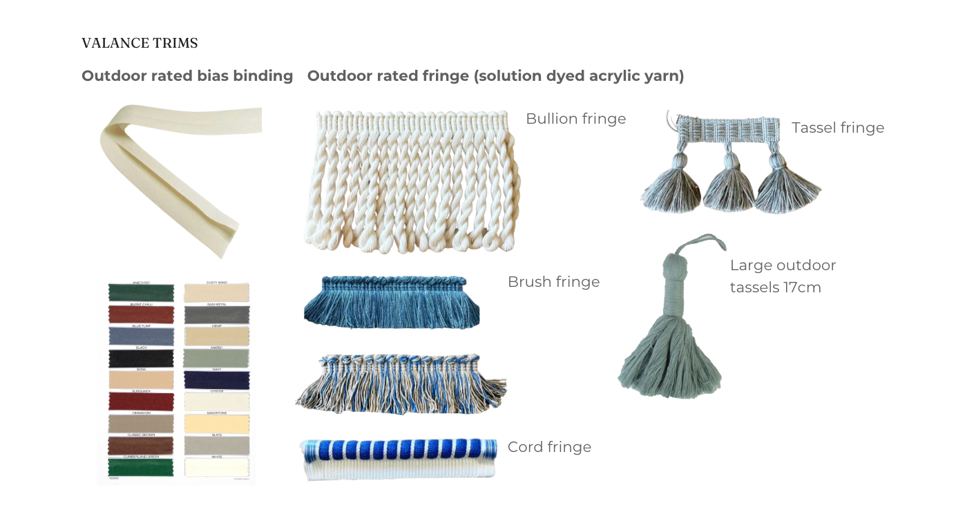 Custom made outdoor fringing & tassels