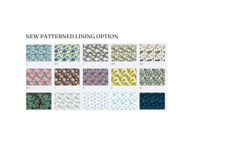 B. Lining options - custom printed solution dyed polyester