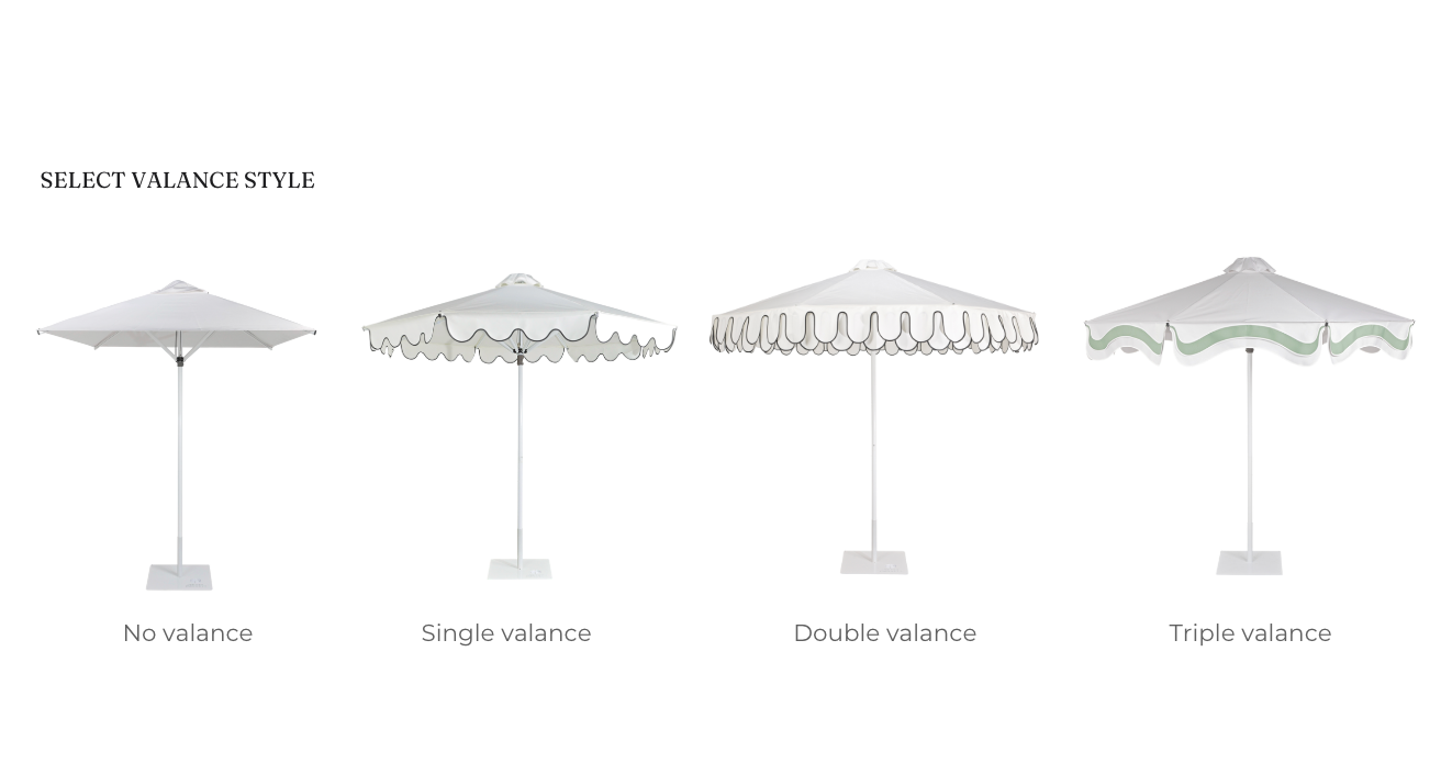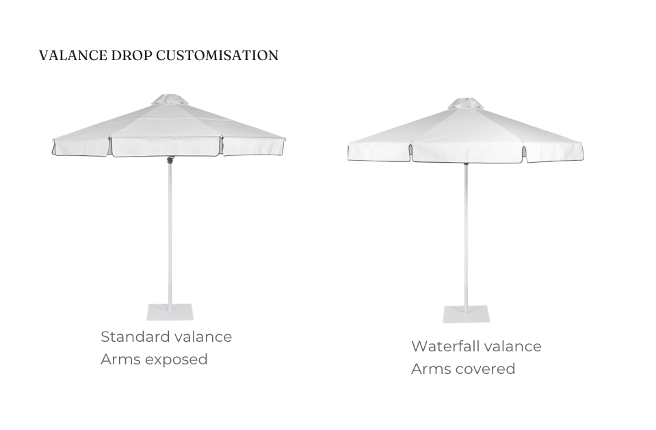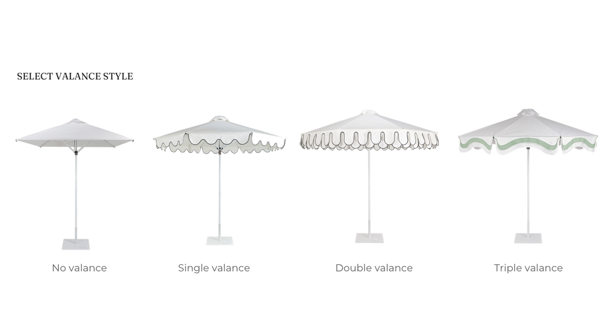 While all umbrellas have a seam from awning to valance, we can treat the fall 2 ways subject to desired profile.