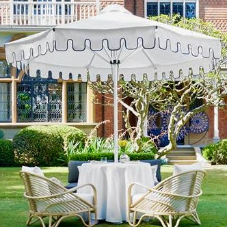 With a range of 2 colour combinations, the Palm Beach looks great as a single or mixed umbrella collection. The classic keyhole scallop valance adding extra style & shade.